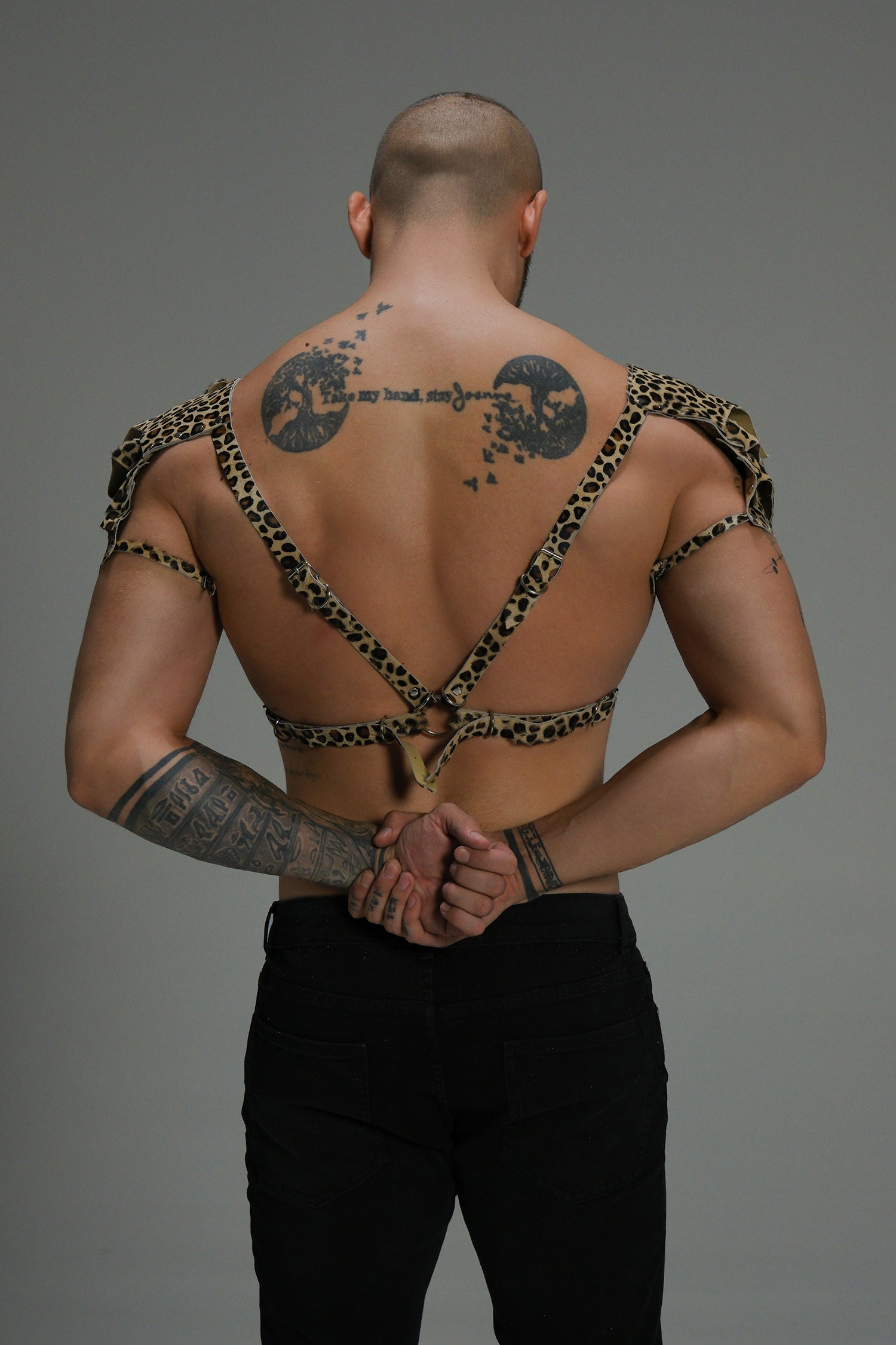 Handmade Luxury Men’s Leather Shoulder Harness Set – Leopard (Animal Pattern)