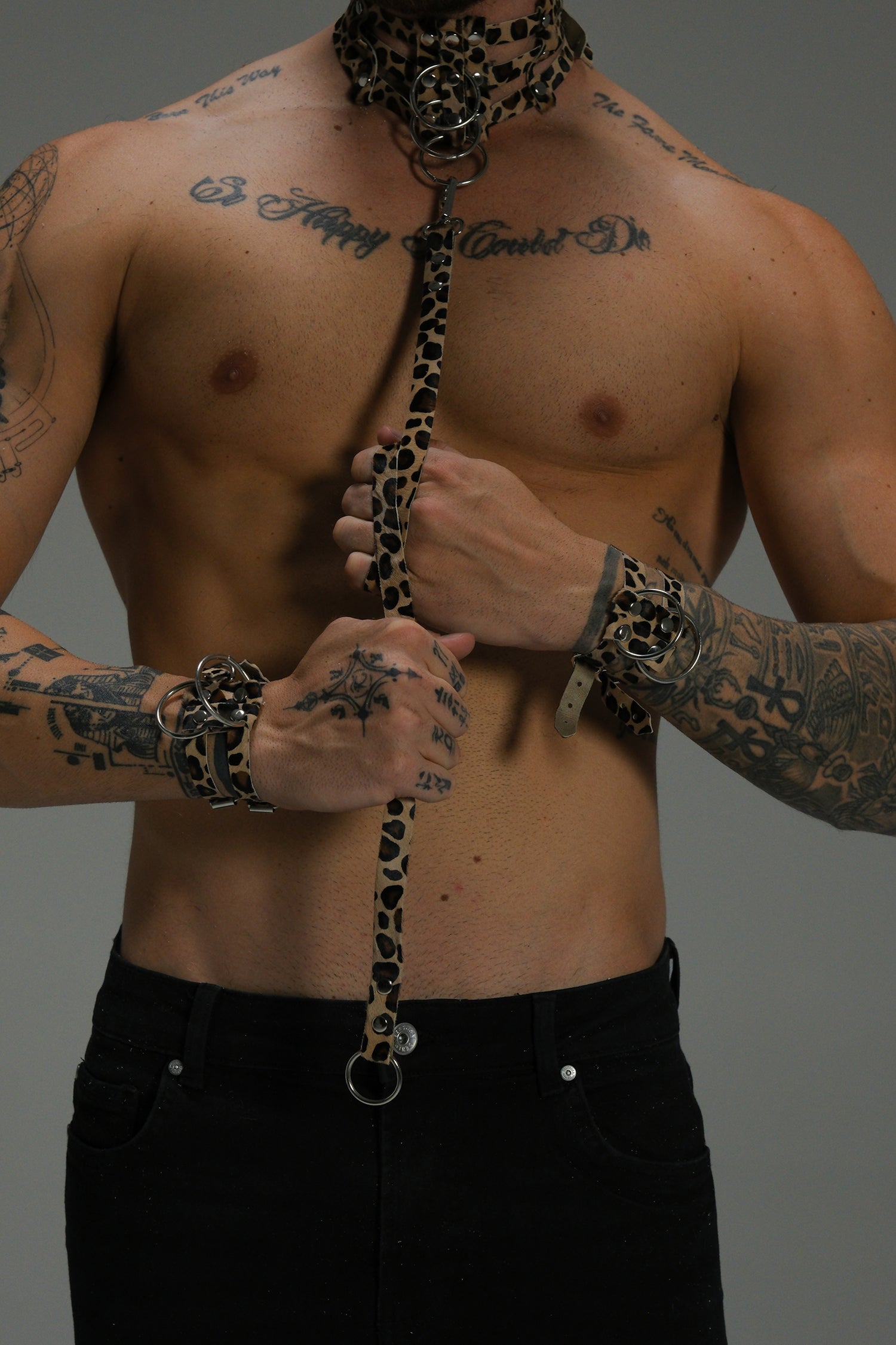 Men’s Leather Bondage Harness | Handmade Luxury Leopard Chest & Upper Body Strap Set