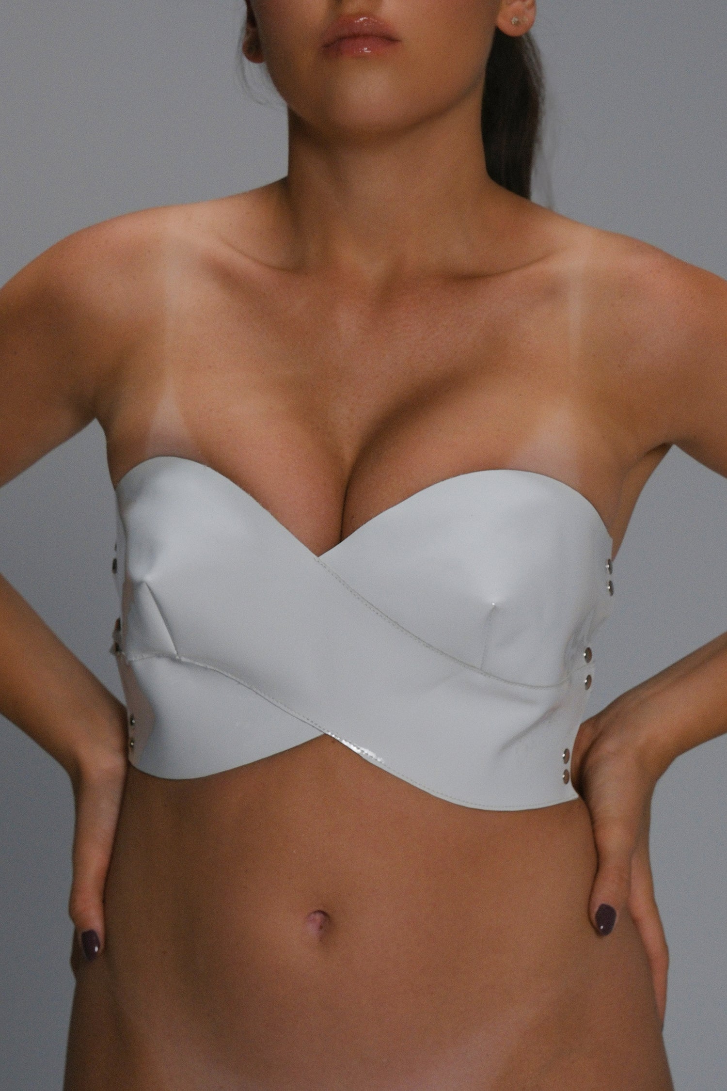 Women’s Leather Strapless Bandeau Top | Handmade Glossy Multi-Buckle Back Strap Corset