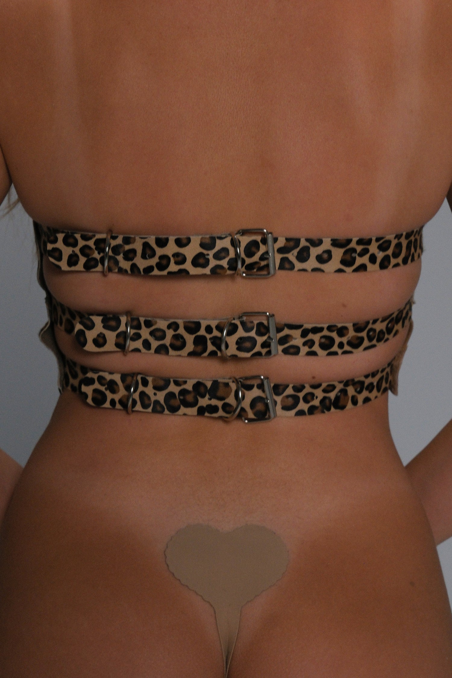 Women’s Leather Bondage Lingerie Set | Handmade Luxury 5-Piece Full Body Harness – Animal Print