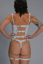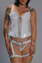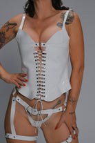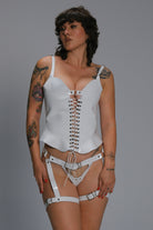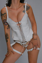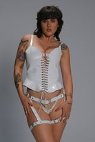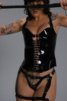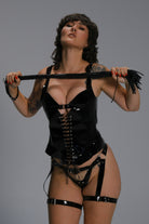 Women’s Glossy Leather Corset Harness Set | Handmade Luxury Lace-Up Body & Garter System