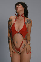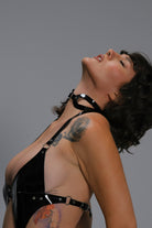 Women’s Leather Bondage Bodysuit | Handmade Luxury Glossy Fetish One-Piece Harness