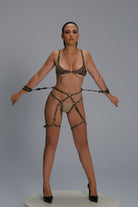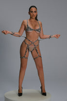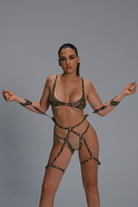 Women’s Leather Bondage Lingerie Set | Handmade Luxury 5-Piece Full Body Harness – Animal Print