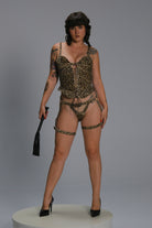 Women’s Leather Lingerie Set | Handmade Luxury Leopard Corset & Strap Panty Ensemble
