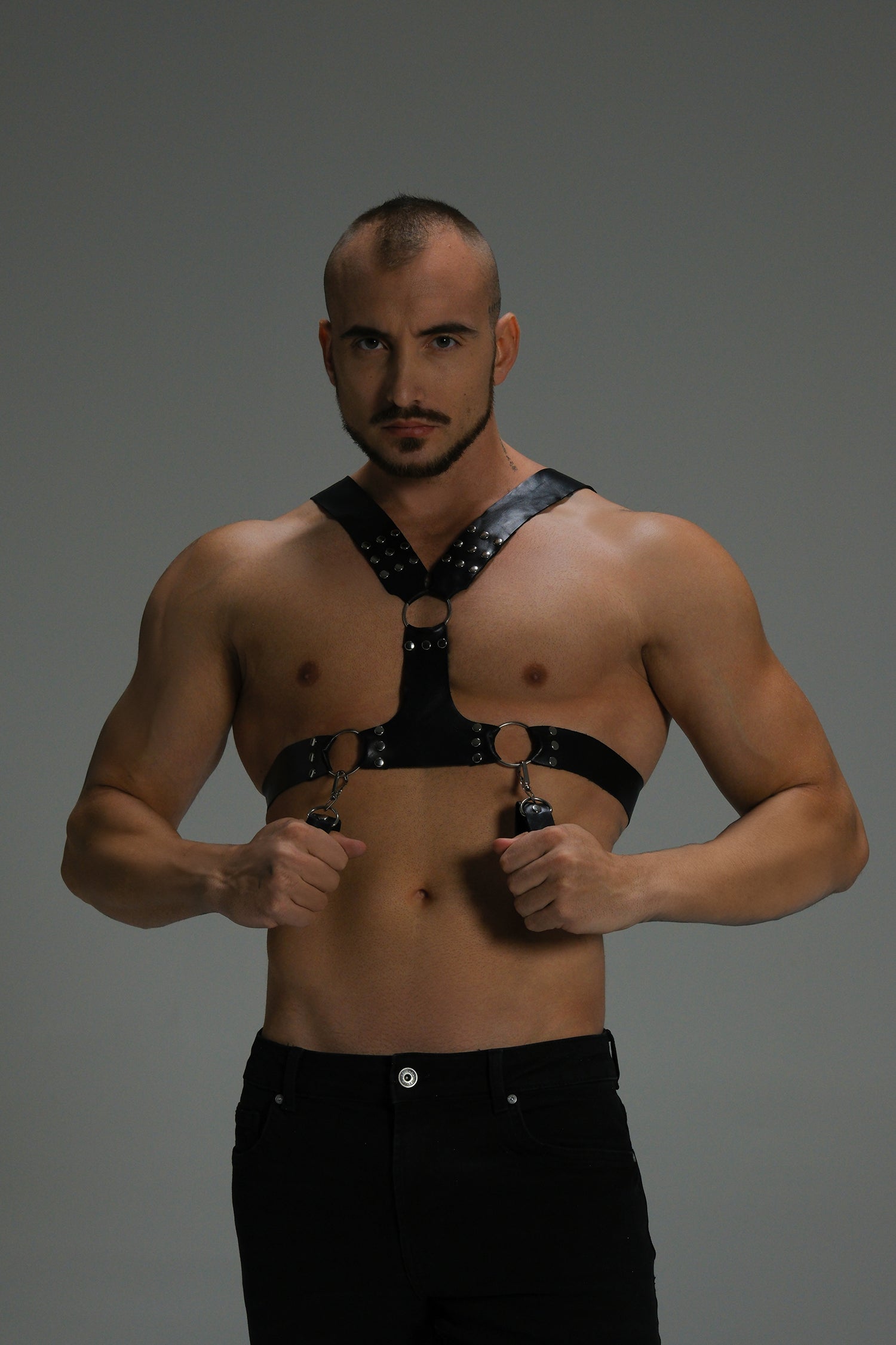 Structured, handcrafted leather sets built for secure contact and confident movement. Made from vegetable-tanned, chemical-free cowhide leather with refined hardware and multi-point adjustability — designed to look powerful, feel controlled, and wear comfortably.