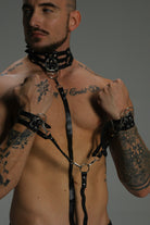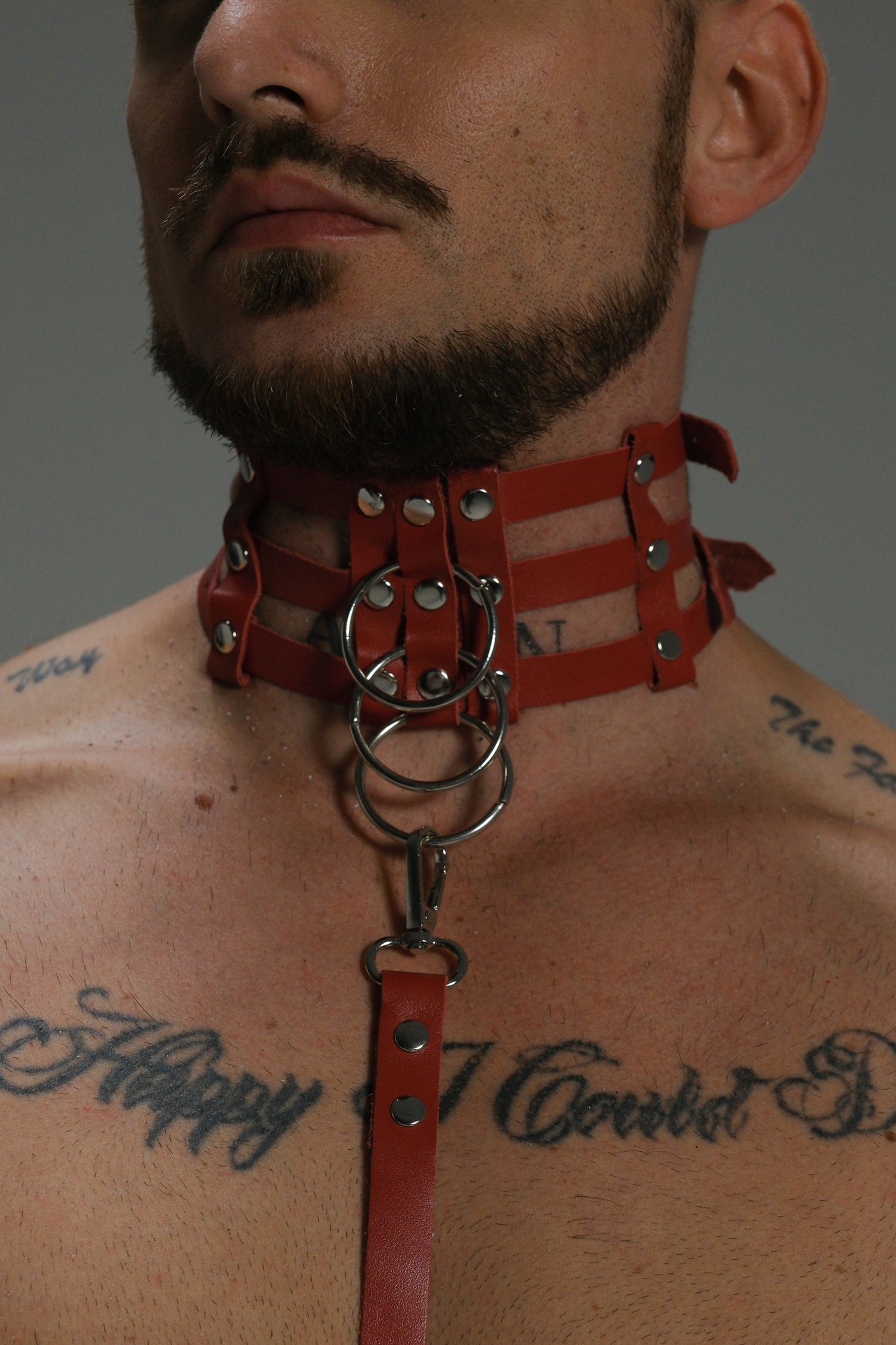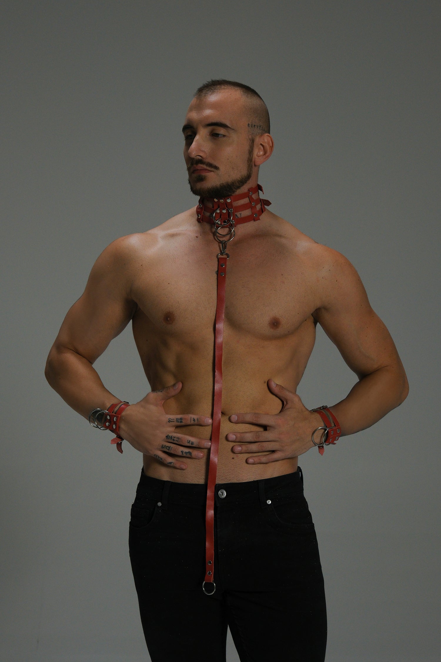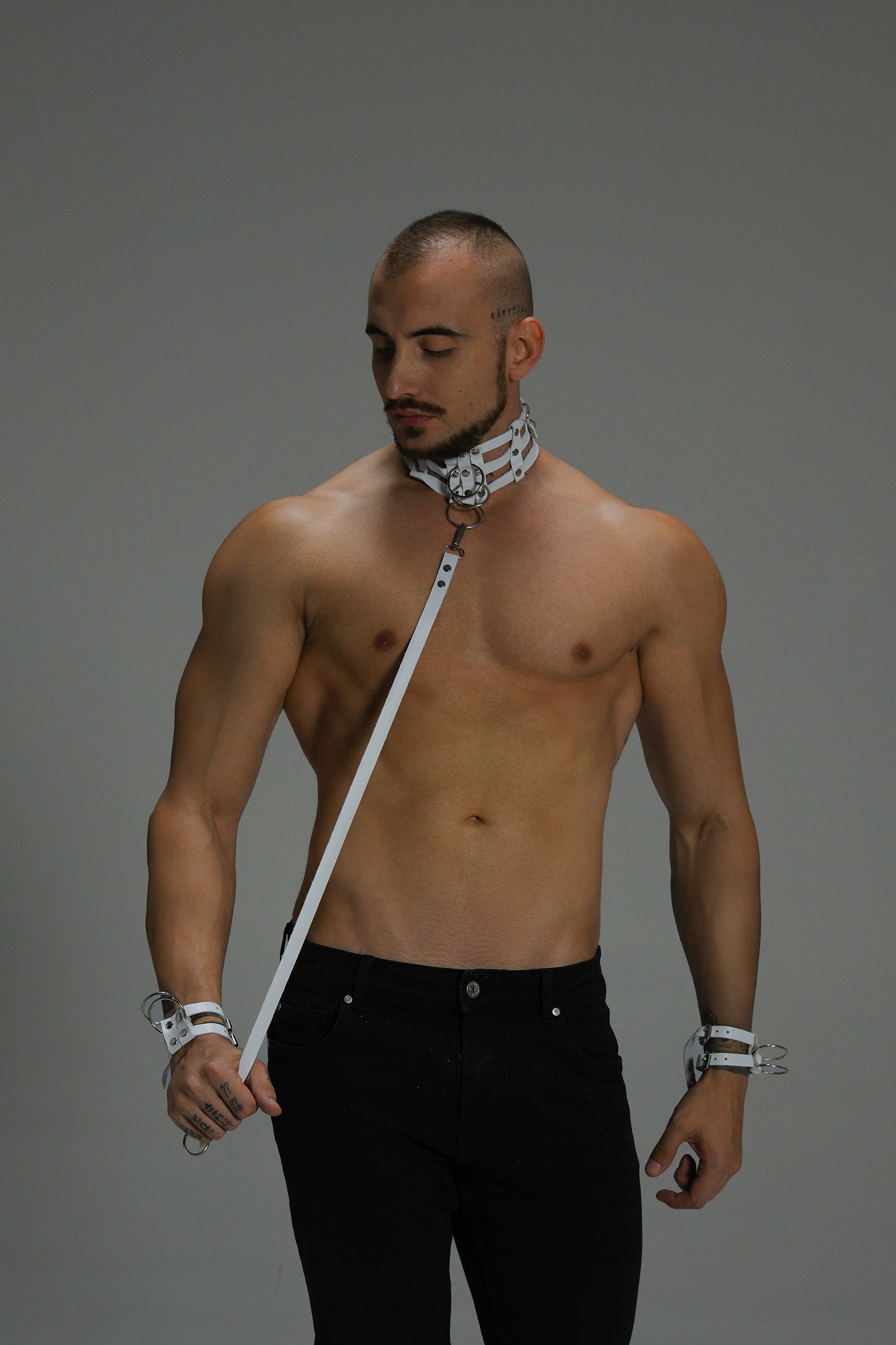 Indulge in refined dominance play with this handcrafted 3-piece bondage collar and leash ensemble, meticulously constructed from chemical-free, vegetable-tanned cowhide leather. Each component is shaped and assembled by skilled artisans, offering exceptional durability, comfort, and a striking visual presence.